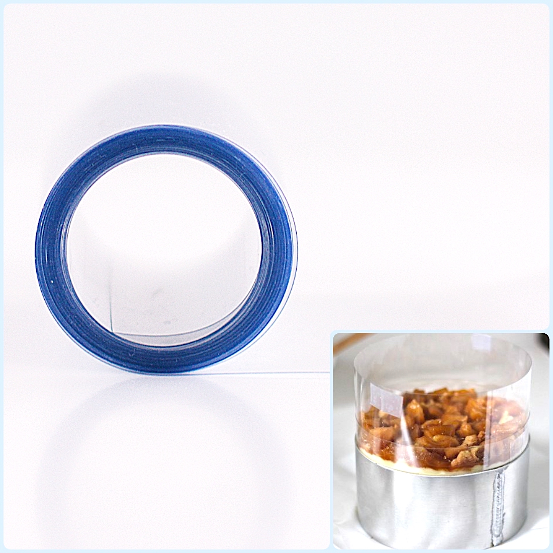 Лента хорошо ложится на крем, сливки, суфле. Особенно актуально применение бордюрной ленты для тортов и пирожных, формируемых в формах.