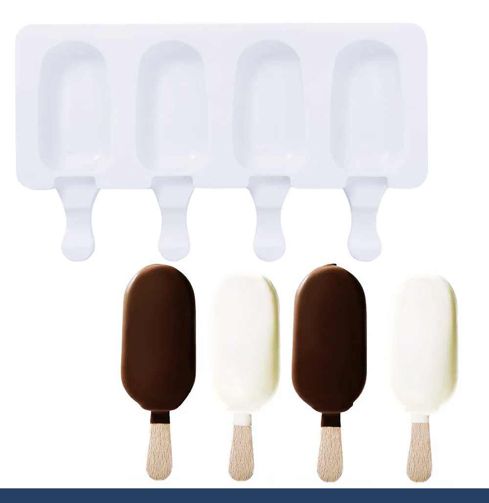Силиконовая форма для мороженого 4 ячейки+50 шт палочек. Размер формы: 255•140•20 мм. Размер ячейки: 90•50•20 мм. Форму для мороженого легко купить в нашем магазине. Бережно упакуем. Быстро доставим ваш заказ. Скидка на первый заказ и постоянным покупателям от 5%. Ищите промокод для скидки на нашем сайте.