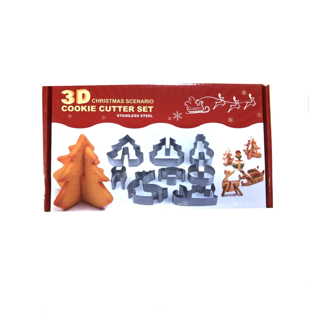 Вырубка для создания пряничных фигурок: ёлка, снеговик, олень и сани, набор 8 фигур.