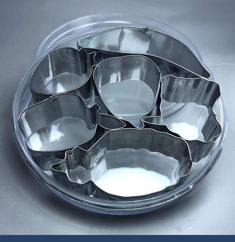 Сверху на фигуре сделан ободок, для предотвращения врезания в руки при надавливании. Упаковка: пластиковая коробка. Изготовлены из нержавеющей стали. Не требуют особого ухода, промойте в тёплой воде с минимальным использованием моющих средств. При бережном отношении набор вырубок простужит вам очень долго.