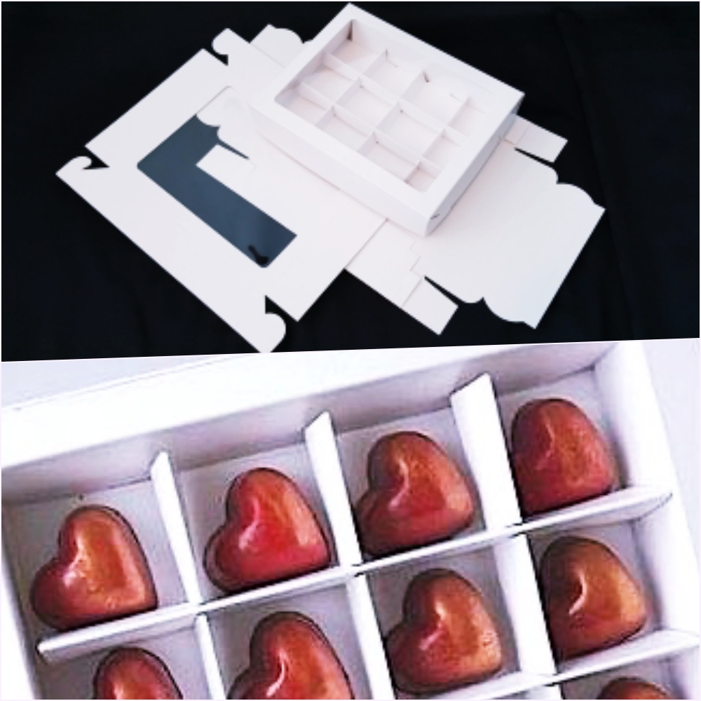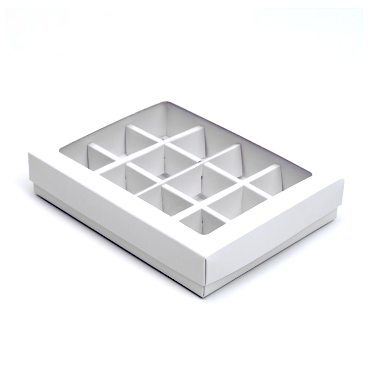Коробка подойдёт для упаковки конфет, шоколада, безе, зефира, пирожных или другой выпечки высотой до 40 мм.