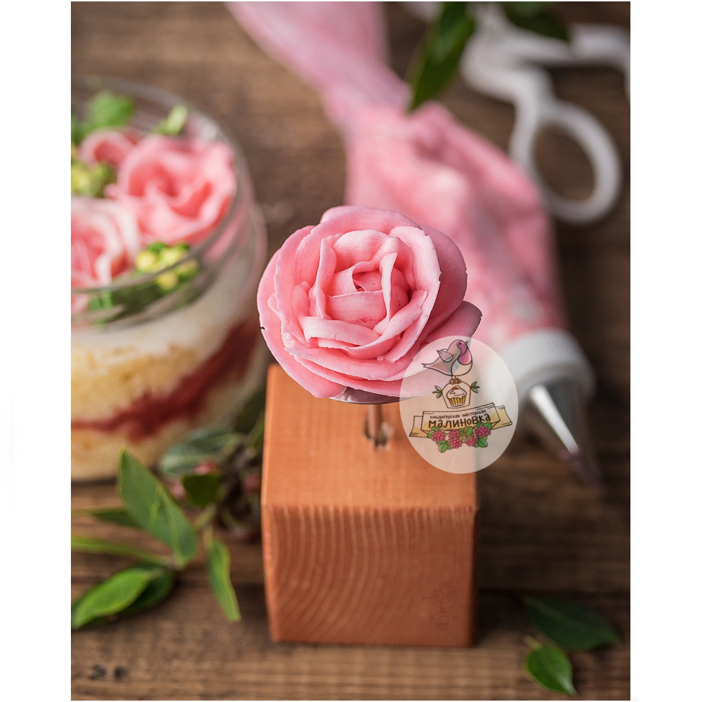 Кубик для кондитерских гвоздиков станет вашим надёжным помощником, вставьте гвоздик с отсаживаемым цветком из крема в отверстие кубика и всё, не беспокойтесь с вашим кремовым бутоном всё будет в порядке.