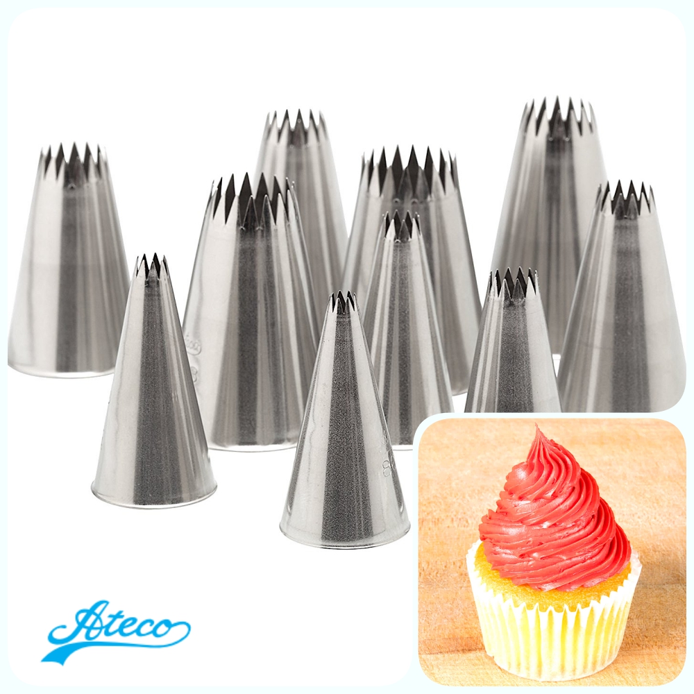 Используйте большие французские наконечники Ateco для украшения кексов, пирожных, тортов, отсаживания зефира, меренги и даже теста, как например для эклеров!
