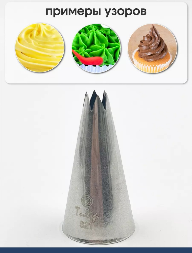 Первоклассная кондитерская насадка открытая звезда №821 Tulip™ от Мастерской Тюльпан, сделана в Корее.