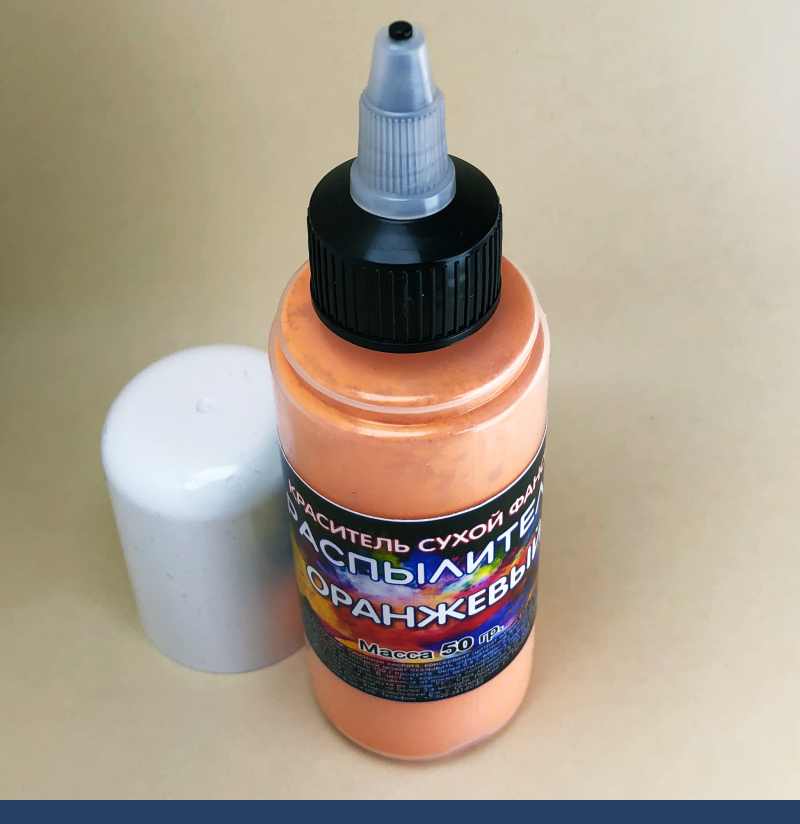 Краситель распылитель это пищевая сухая краска в специальной бутылочке-флаконе с эффектом аэрографа, вес красителя 50 г. Цвет - ОРАНЖЕВЫЙ. Просим учесть, фото на сайте не передаёт точного оттенка красителя в следствии цветопередачи экранами (мониторами) различных устройств (гаджетов).