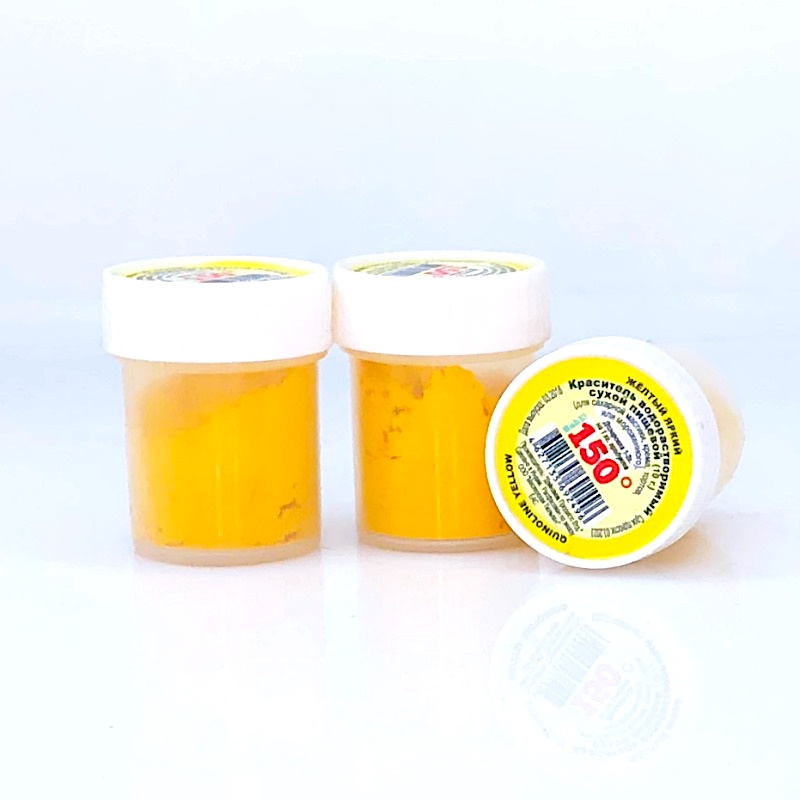 Краситель водорастворимый ЖЁЛТЫЙ Хиниловый (Яркий) сухой пищевой 150º Bake!™ - это порошок синтетического происхождения без запаха, не оказывает вкусового воздействия.
