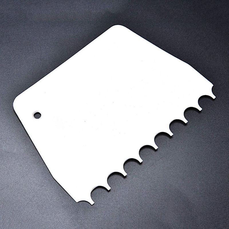 Кондитерский скребок прямой с зубчиками предназначен для придания рельефа шоколаду, айсингу, бисквиту, крему, мастике.