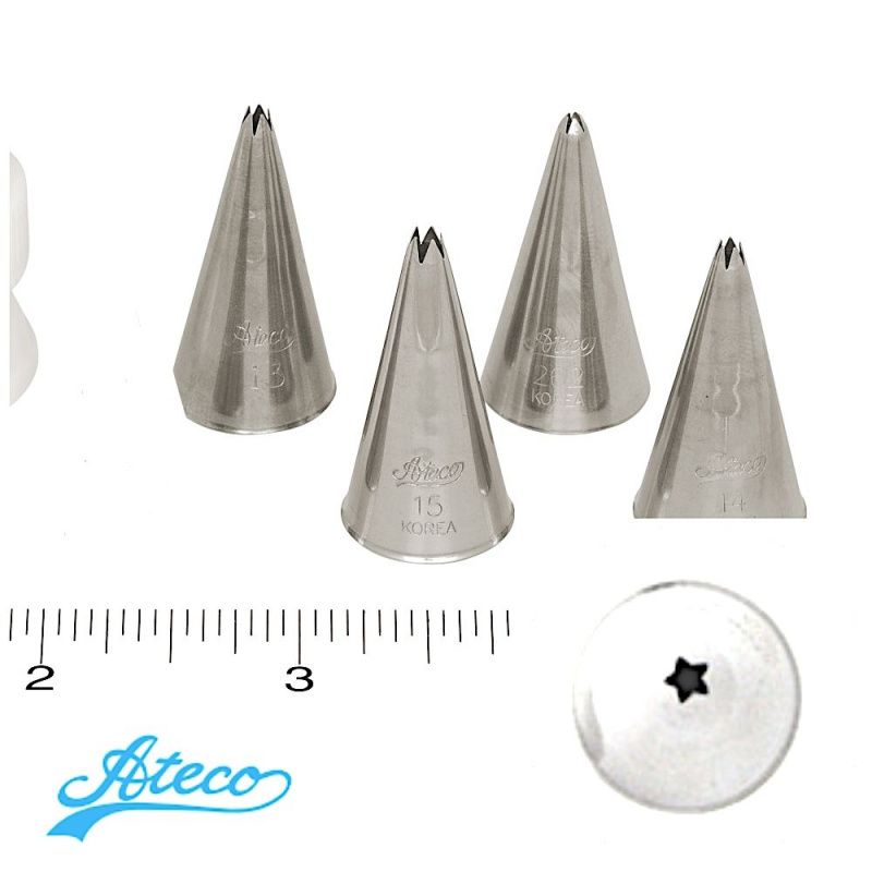 Кондитерские насадки Ateco номера 13, 14, 15, 262 - это пяти лучевые открыте звёзды мини размера.
